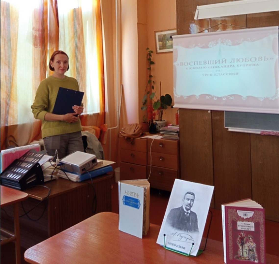 В начале мероприятия присутствующие познакомились с биографией писателя. Затем библиотекарь рассказала о творческом пути писателя и интересных фактах из его жизни. Обучающиеся познакомились с самыми известными произведениями Куприна о любви: «Олеся», «Гранатовый браслет», «Суламифь». Посмотрели отрывок из фильма "Гранатовый браслет".